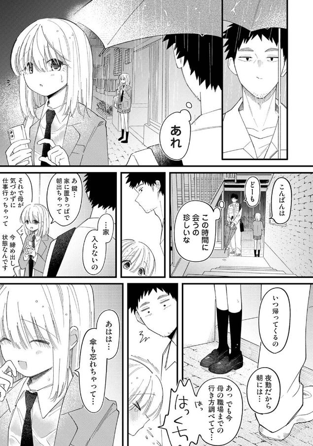 とある雨の日、ずぶ濡れなうえに家の鍵を忘れ締め出し状態の彼女を一晩だけ泊めることに。