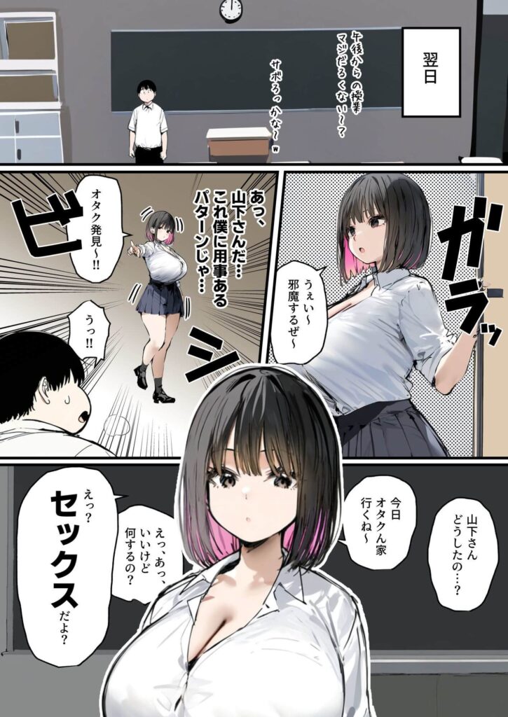 複数人の彼氏がいるものの、ややマグロ気味でイッたことのないギャルが、オタク男子とのセックスでアヘ顔をする展開が破壊力満点です。ほかのギャルもしっかりオタクチ○ポでイキまくり、気持ちよさでシーツをギュッと握っているリアルさがたまりません。