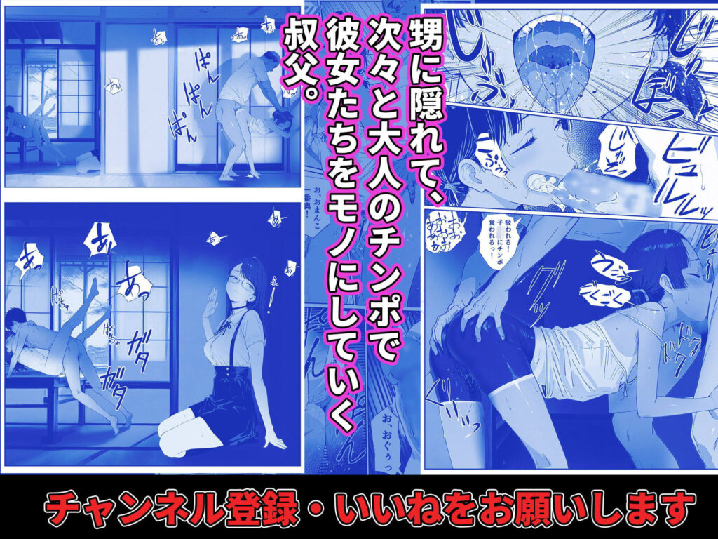 乱交エロ動画を配信をしている甥っ子に脅されながらも、少女たちとハーレムセックスを楽しむ叔父が描かれた本作。