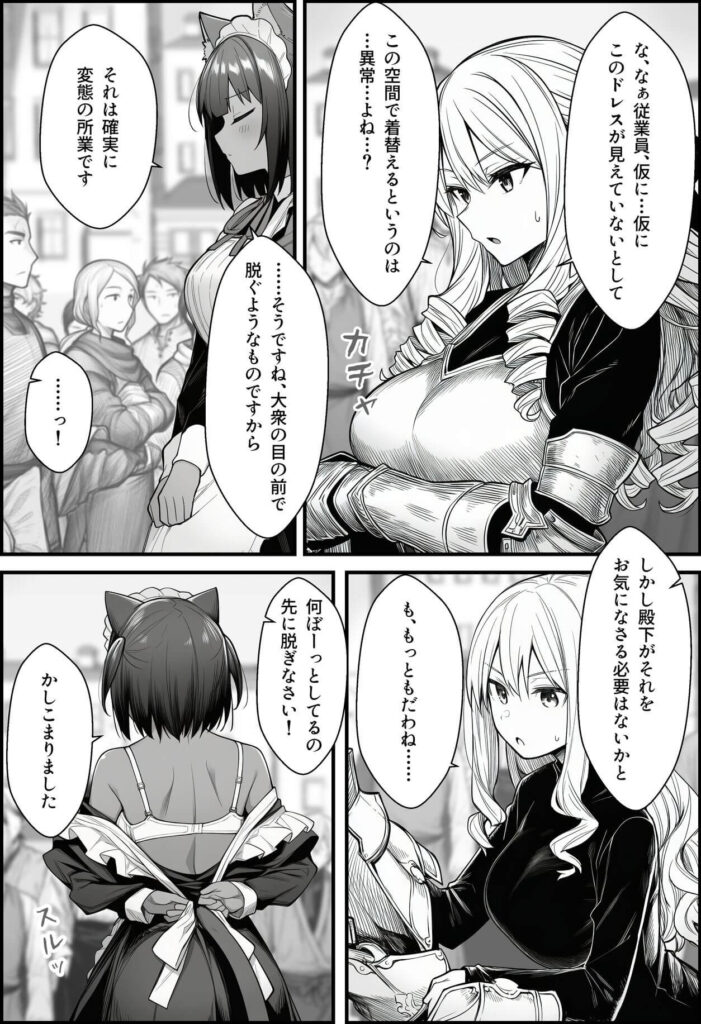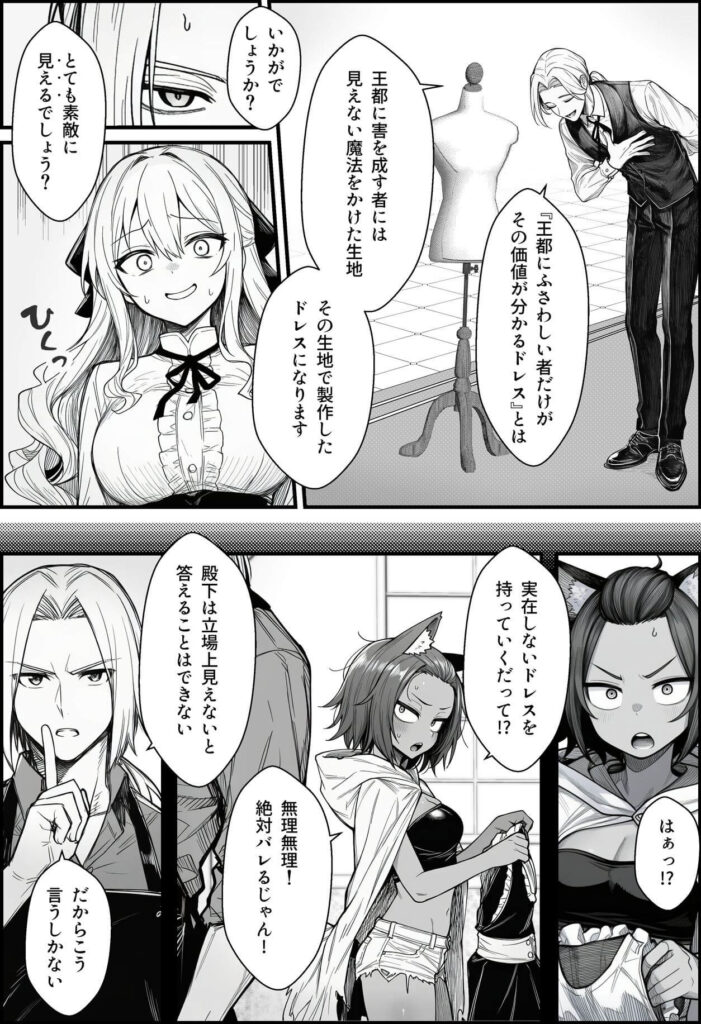 『悪政を敷くワガママ王女に見えないドレスを着せてわからせる話』の無料エロ画像を紹介します。