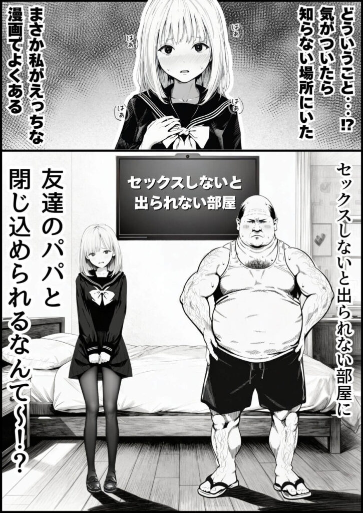 友達のお父さんと閉じ込められるなんて〜〜!?友達のお父さんと謎の部屋から脱出すべく