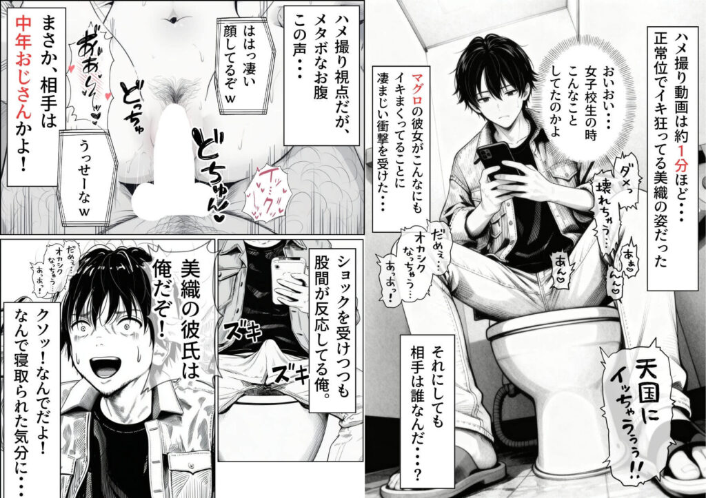 自分の前だとあまり感じてくれない彼女が、おじさんとのセックスでイキまくるシチュエーションが最高です。しかも、彼女とおじさんのセックスをハメ撮り動画で見るストーリー展開がたまりません。