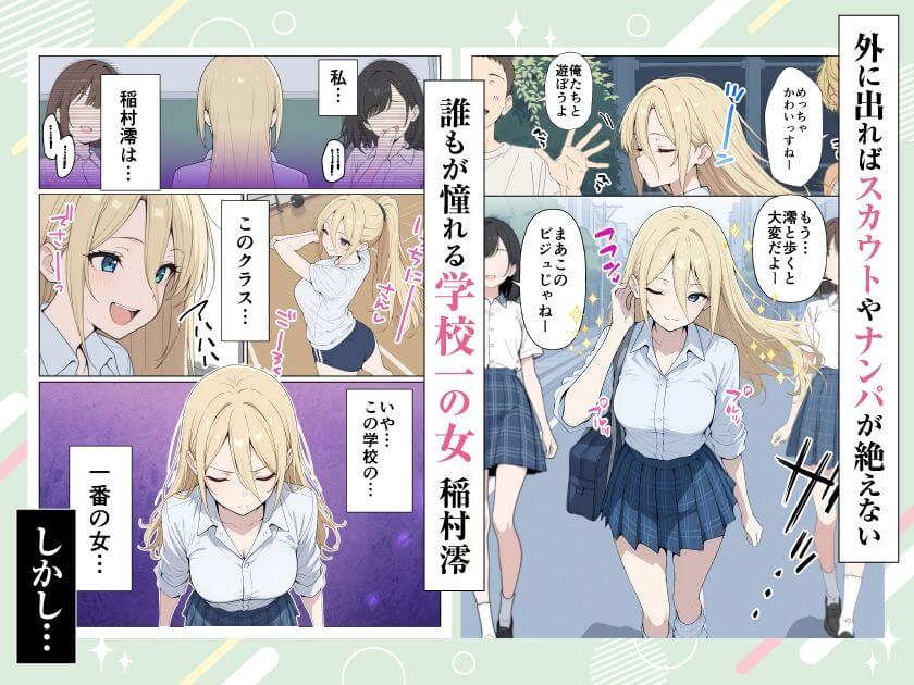 整形と努力でカースト上位にいたものの、いじめられていた過去を知っている男子生徒に脅されたギャル。エッチな要求に我慢したものの、鬼畜な調教で奴隷へと堕ちていきます。絶望しながらも快楽に溺れていく表情がエロく、きれいな肌と強気な性格も相まって汚れていく展開に興奮必至です。誰もが憧れる女子生徒を一方的にいじめられるシチュエーションにはゾクゾクします。