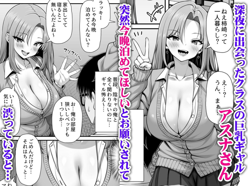 深夜0時、コンビニで偶然クラスメイトの巨乳ギャル・アスナさんと遭遇した。