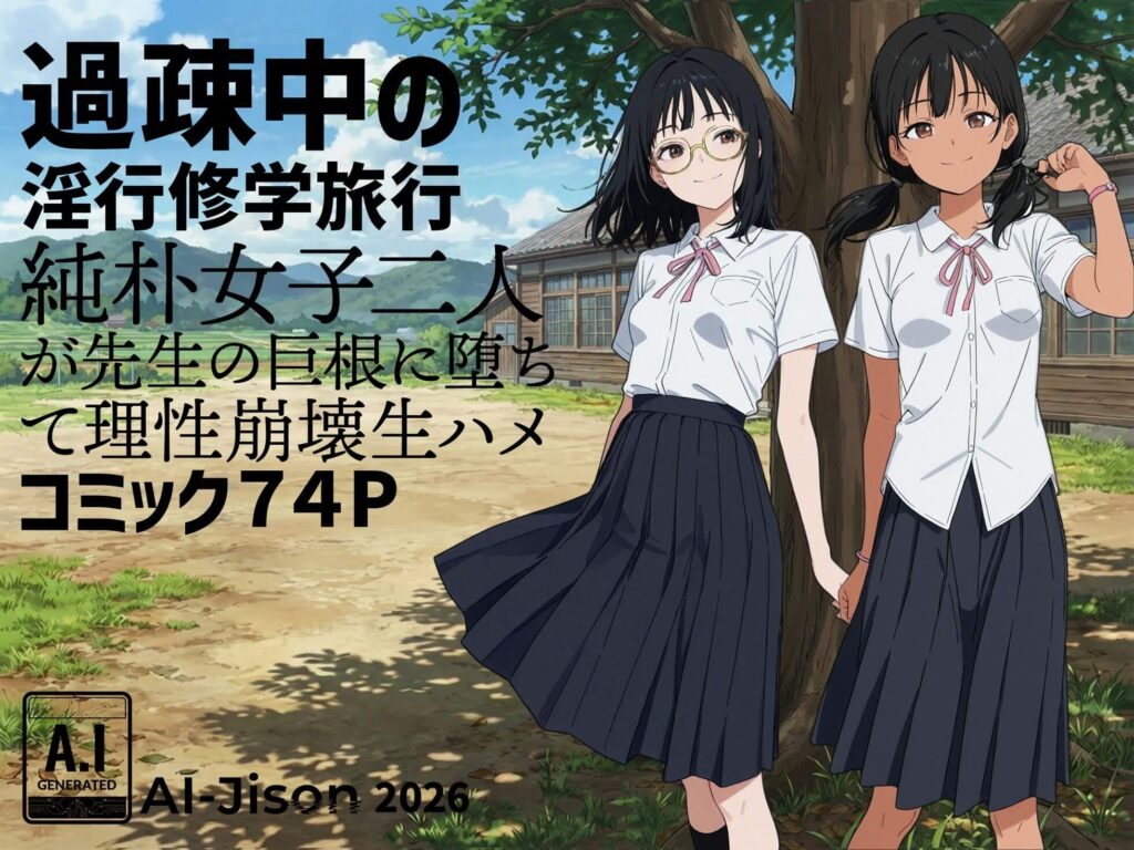 過疎中の淫行修学旅行〜純朴女子二人が先生の巨根に堕ちて理性崩壊生ハメ|「AI-jison」の同人エロ漫画
