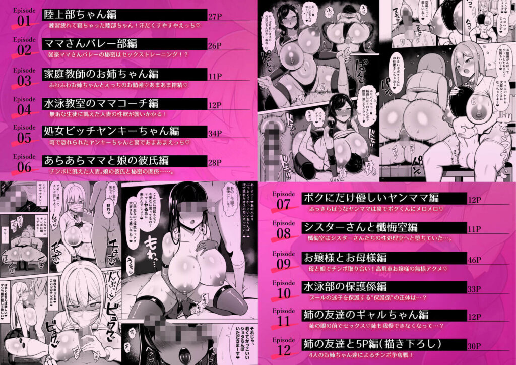 おねショタやママショタのイチャラブ和姦が描かれたストーリー内容で、陸上部や水泳教室、処女ビッチヤンキーなど様々なジャンルが登場。書き下ろし漫画では5Pを堪能でき、エッチなお姉さんたちの攻めに何度も興奮します。