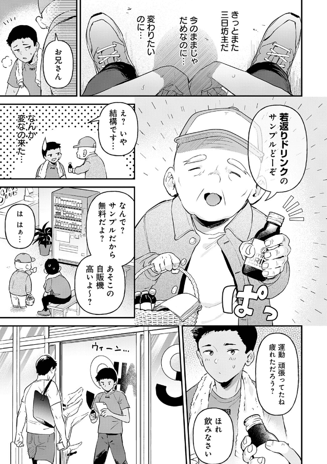 冴えない自分を変えたくて通い始めたジム。そこで怪しげなお爺さんに「あの頃に戻りたいあなたに」と謳うドリンクを渡され、若返ってしまった!?