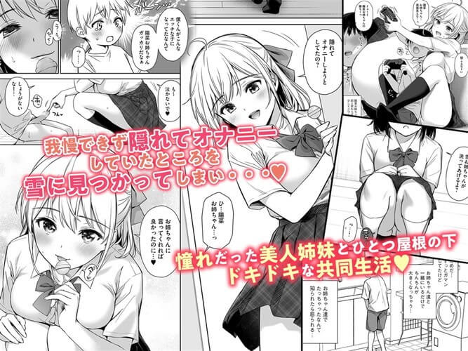 ある日、両親の留守によって、主人公の面倒を見に親戚姉妹と数年ぶりに再会します。久々に会った2人は綺麗な大人の女性になっていて、興奮した主人公は隠れてオナニーすることに。