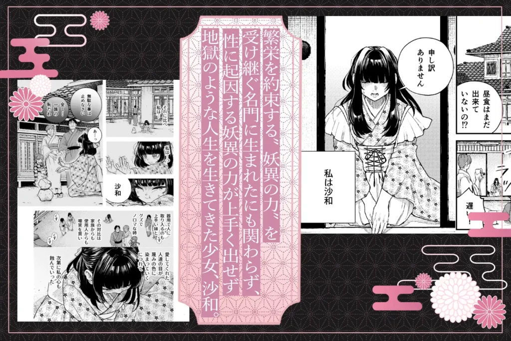 引っ込み思案な性格故に性に起因する妖異の力が上手く出せない少女、沙和。その後力の扱いに長けた妹が生まれたことで、 沙和は家族のみならず使用人からも馬鹿にされ、