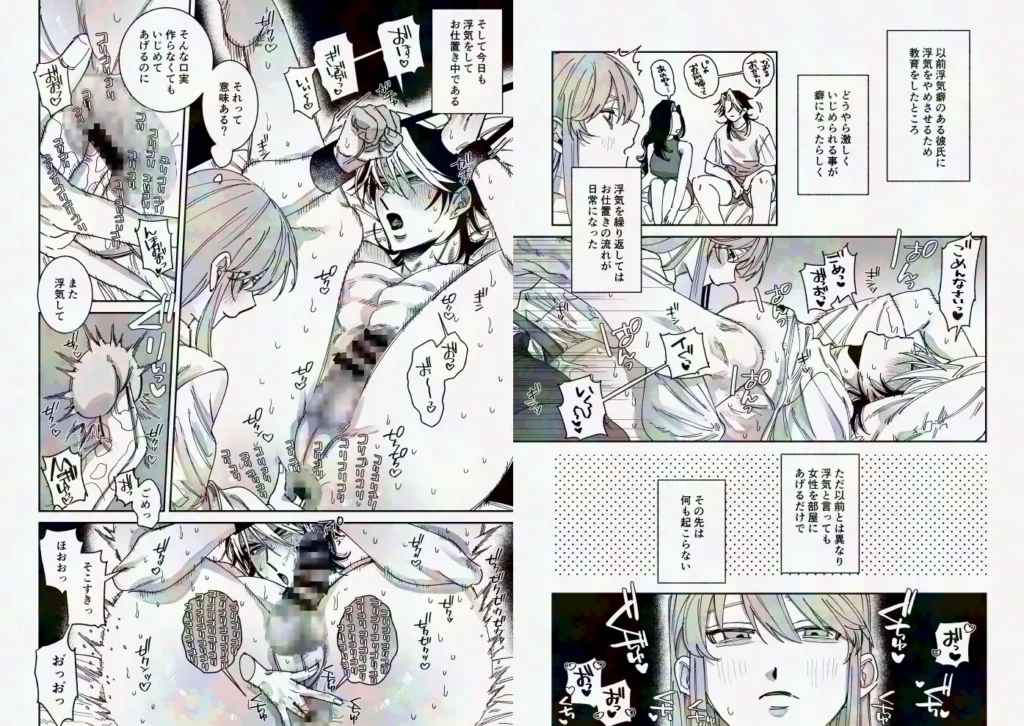 サークル「たいへんよくできました。」が手掛けた話題の同人誌TLエロ漫画『浮気癖のある彼氏を玩具で教育する話2』の無料サンプル画像を紹介します。